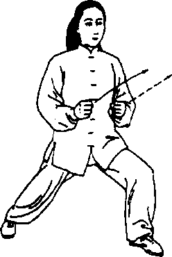 转体摆掌划平弧,后坐下捋走下弧,双拳击出稍 行上弧,3条动作弧线要连接和谐贯穿,使整体动作 柔韧圆活,内劲蓄涵,如棉裹铁,势不可挡。