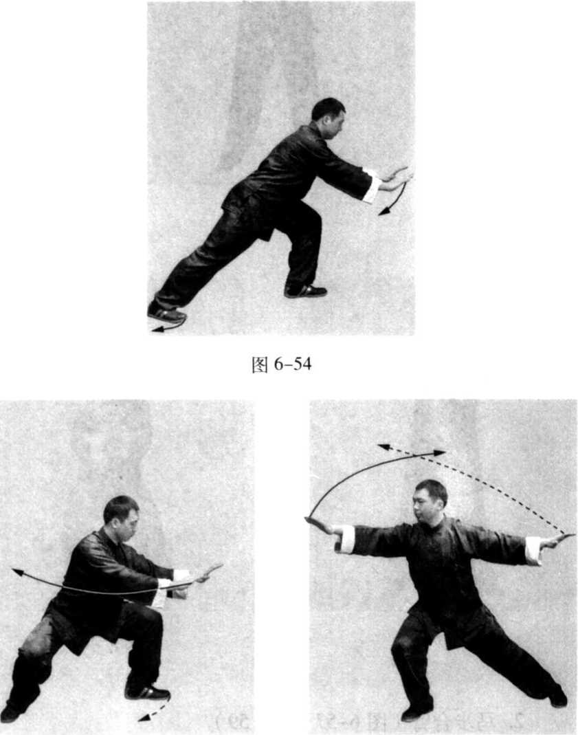 1. 右转分掌(图6-54、55、56)。图 6-57图 6-58 图 6-59