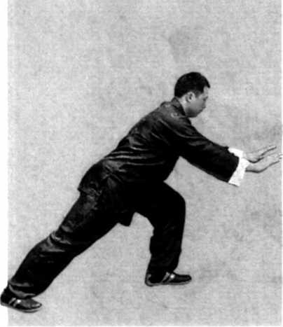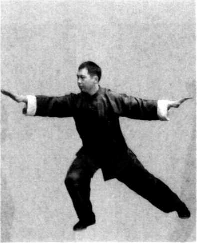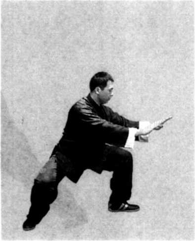 向上转至肩高,掌心向下,掌指斜向左前方,眼看右前方 (图 7-132、133、134)0