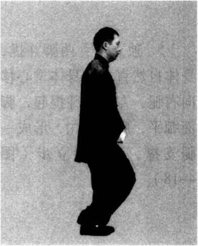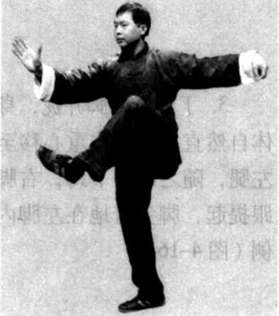 3. 独立步:两脚并拢, 身体自然直立,身体重心移 向右腿,左腿屈膝提起,脚 面绷平,脚掌内扣,形成一 腿支撑,称为独立步(图 4一 18 )〇