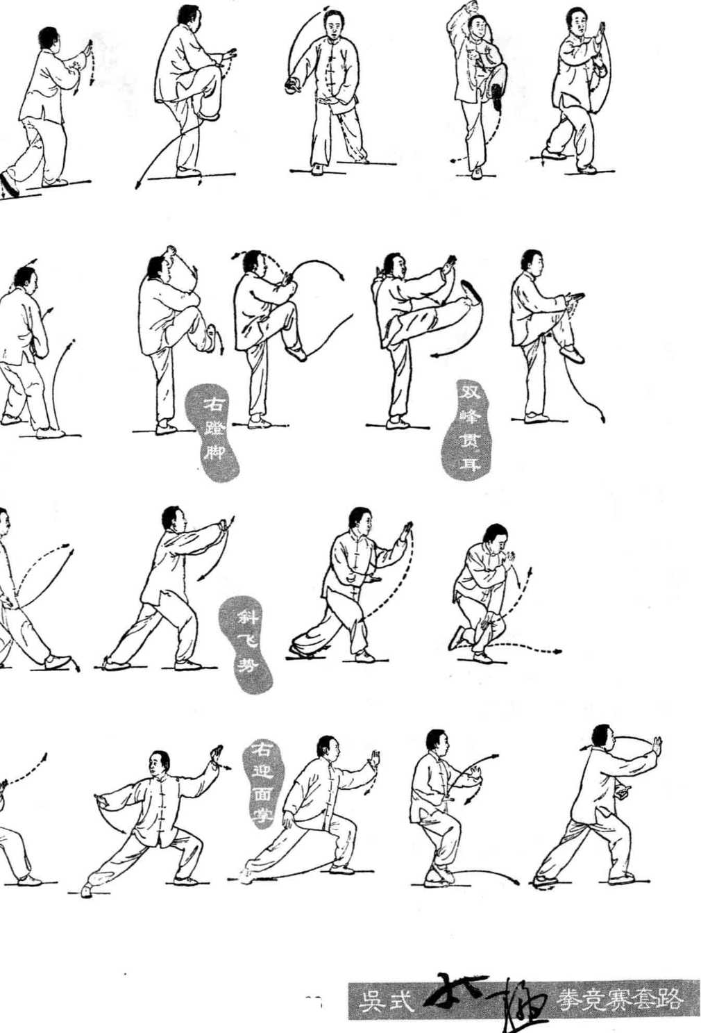 退步打虎f右蹬脚一双峰贯耳—斜飞势-> 右史面掌