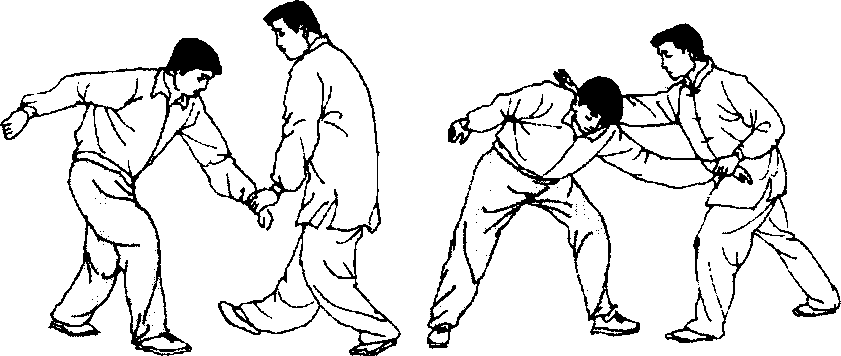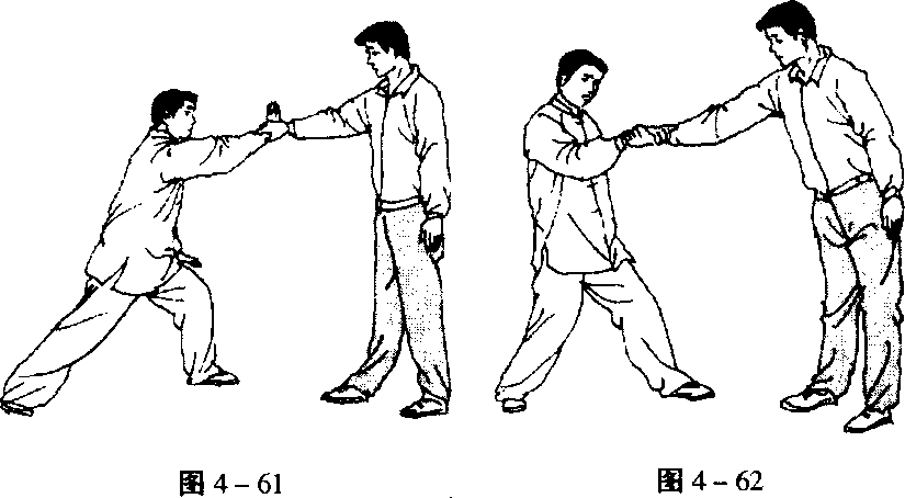 (-)名称释义“海底”是穴道名称(即腋下神经),此势动作系一手下指 使臂部产生一种弹力,以另一手向上、向前,指刺对方腋下海 底穴。(二)用法如我右手腕部被对方摇拽时,我应随其拽劲将右臂放松, ? 116 ?图 4一59图 4-60第四章吴式太极拳竞赛套路的防身用法并以手指指尖向下(引伸含有插入地中之意),同时屈膝略蹲, 并以左掌往前伸出,点刺敌腋下神经(即海底穴)。 (图4 - 61、4 - 62 . 4 - 63)图 4一59图 4-60第四章吴式太极拳竞赛套路的防身用法AIX太沃卡图 4一63