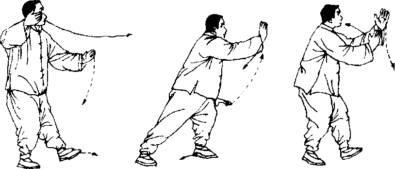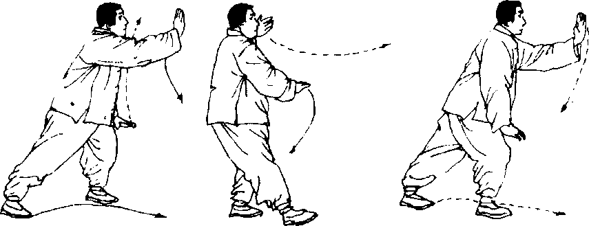 图 5- 19图 5-20图 5-21度,再上左脚,成左虚步后,变弓步做搂膝拗步。