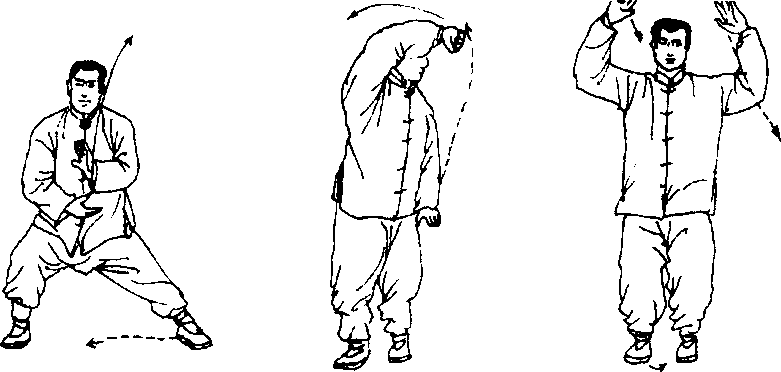 ①起身上步时,头顶上领,上步与挑掌上下相领。