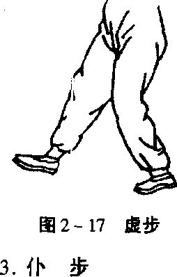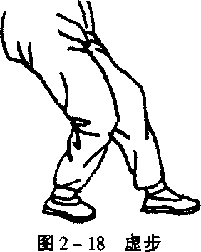 两腿微屈,一腿全脚掌着地,另一腿脚尖着地,落于实腿 里侧;身体竖直;平视前方(图2 - 21)。
