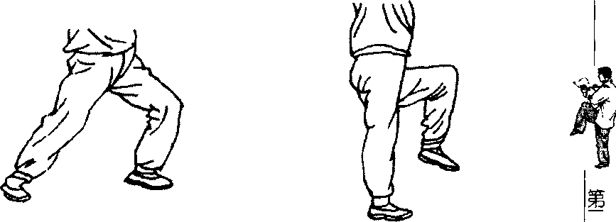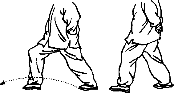【要 领】各种步型都要稳健,保持尾闾中正,不偏不倚, 气沉丹田,重心稳定。