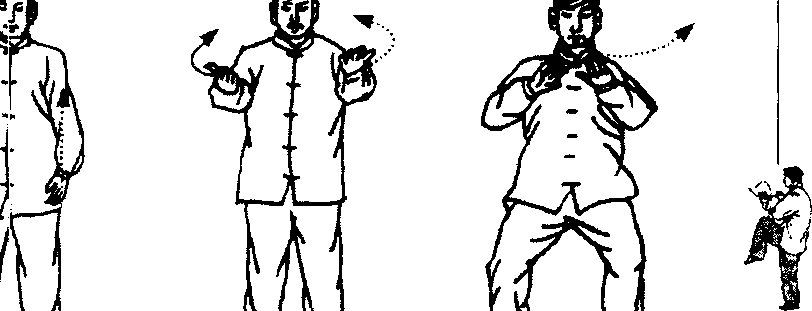 图 3 -12 图 3 -13 图 3f 14第三章 武式太极拳基本功3,两手臂徐徐向前平举,两手高与肩平,与肩同宽;肘 微下垂;手心向下;眼视前方。此为升势(图3- 14)。