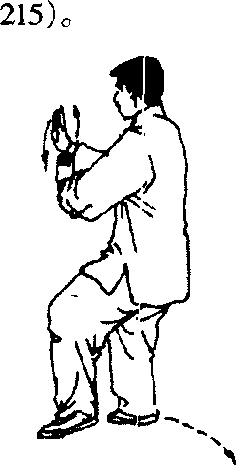 3 第四章武式太极拳竞赛套路图 4-213 图 4-214 图 4-215.重心移向右腿并屈蹲,两手向后捋至腹前,掌心斜相