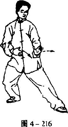 对,指尖向前;眼看左掌(图4-216)。