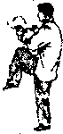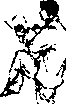 2.右脚落于左脚旁踏平,重心移于右脚,左腿提至大腿 水平,屈膝,小腿下垂,脚尖向下,成独立步;同时右拳变掌 向右胯旁下按,手心向下,手指朝前;左手在左胯旁握拳,拳 心向里举至齐顶,前臂竖直于左大腿上;目视正东方(图6 - 159) o
