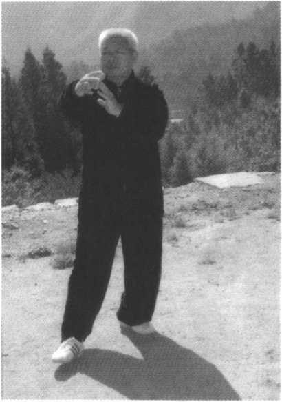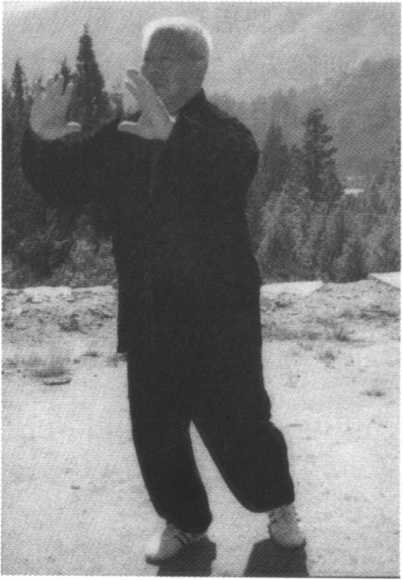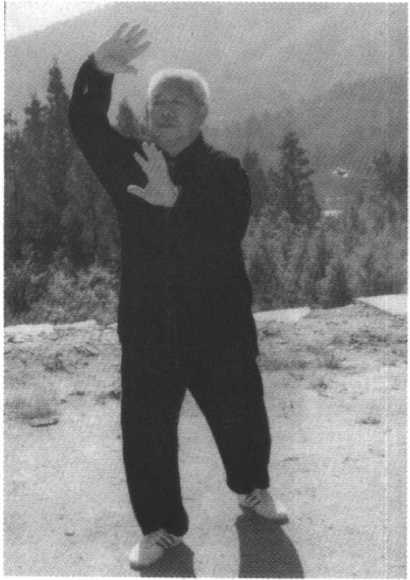动作:左腿向后退半步 坐实,右腿后移,以足尖点 地,两腿为左实右虚;同时左 手向右振至腹前,右手向前 上弧形下按,与肩平,面向西 南(图71)。要领:与第八式手挥琵 琶式相同,惟方向不同。第二十五式第二十五式第二十五式第二十五式白鹅亮翅动作、要领均与第六式白 鹅亮翅相同(图72 ~图74)。图72