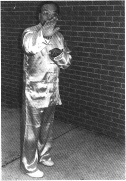 吴鉴泉早年架式“退 步跨虎”一招,左钩手位于 腰际,钩指对身后,拳背朝 前「潴吴老晚年演变如此, 以舒左肩气血流转。