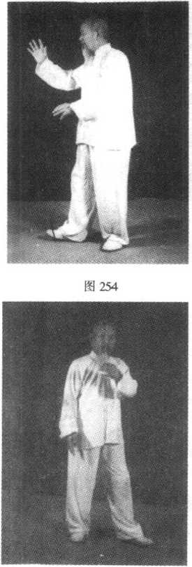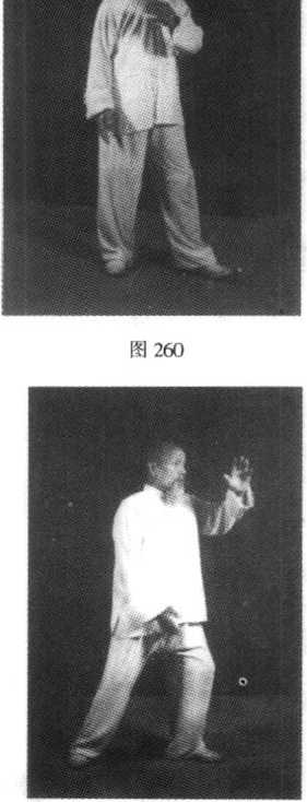 与第34式云手动作相同, 要领也相同(图250 ~图254)。图253图255图253图255第91式云手二与第35式云手动作相同, 耍领也相同(图255?图259)。图257第92式云手三与第35式云手动作相同, 要领也相同(图260?.图264)。? 123 ?图263图264图265图265