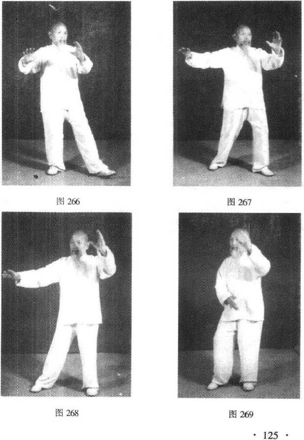 与第4式单鞭动作相同, 要领也相同(图265?图267)。第94式提手上式与第5式提手上式动作相 同,要领也相同(图268、图 269) 第95式高探马与第18式高探马动作相同,要领也相同(图270、图271)。图270图271图270图271