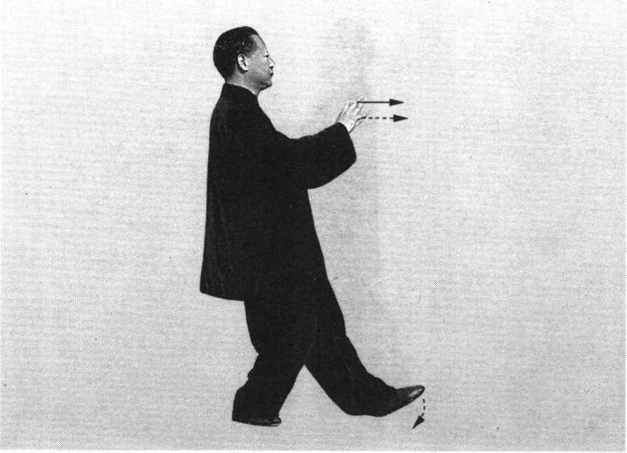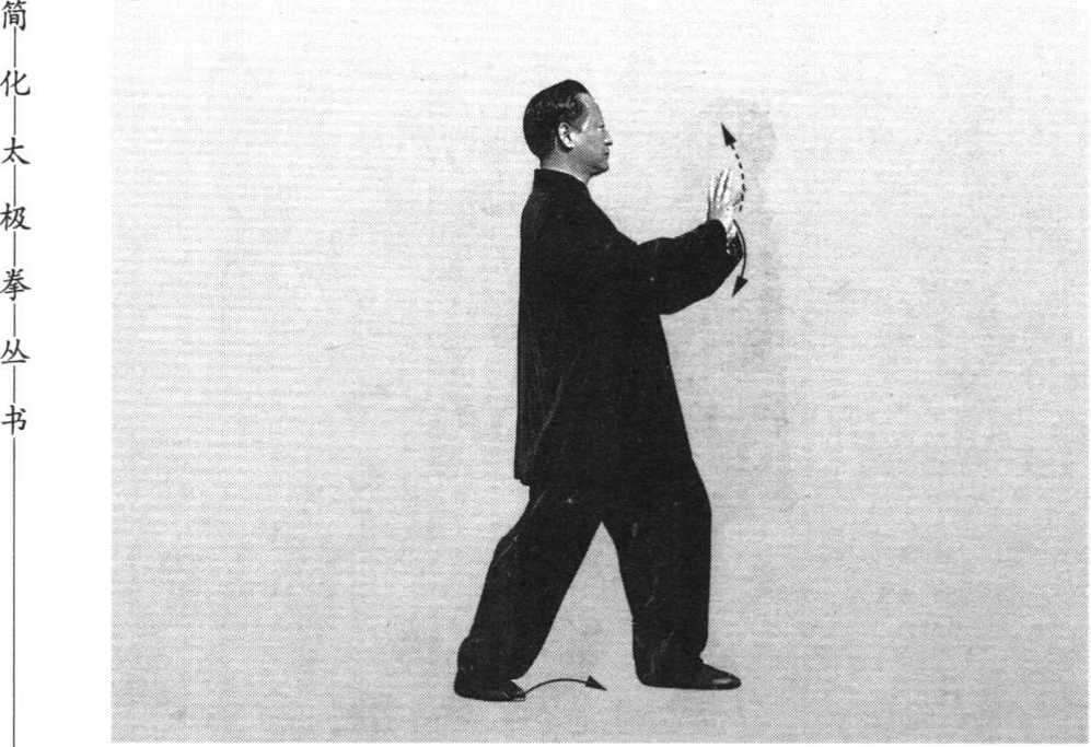 要点:上步、退步要轻灵稳健,移动重心时 要松腰、沉胯,两掌向前推出不要超过两肩的宽 度,两掌心有外凸之意,远不过脚。