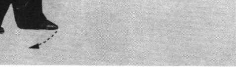 上身姿势不变。右腿弯曲不变;提起左脚向 前蹬铲出步,脚跟着地,脚掌上翘,左腿自然伸 直(图52)。