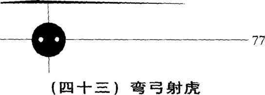 上体向右拧转(胸向东);同时, 右手经左前臂外侧边翻掌心向外,边 向前、向上、向右划弧至右前方,腕 与肩同高;左手收落于右肘内侧,手 心斜向下;眼看右手。(图190)