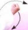 ② 错误:左掌与右拳在运动过程中分家。纠正:左掌在划弧的 运动过程中,始终保持在右拳上。
