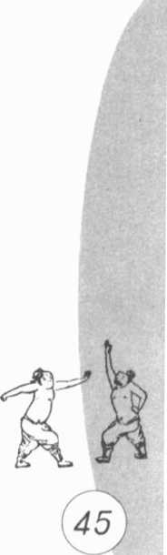 (3)左脚实步将脚尖转向正东,身体随之转向正东,