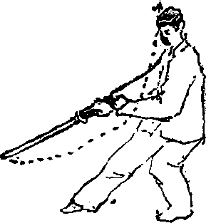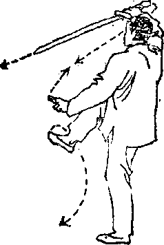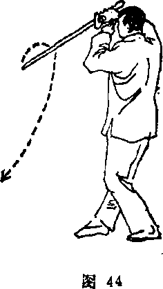 对方以械朝我膝部打来,我则以剑锋朝下向身前外侧横 格其械式腕臂等部.