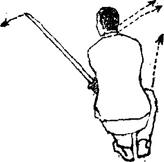 对方以械击我前胸,我即以剑锋由下向前上方直击敌前 胸或臂腕;如进击落空而将剑折回,随转身形再以剑锋刺敌 腿部足三里穴。