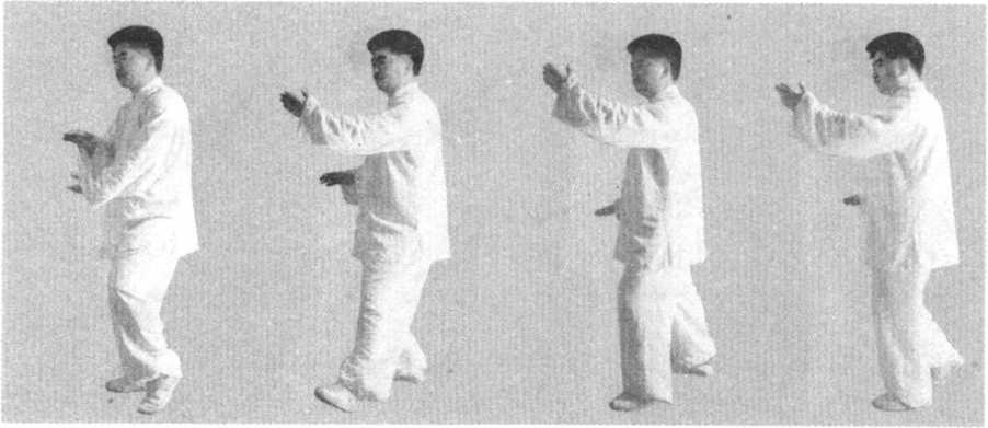 图128 图129 图130 图131图128 图129 图130 图131使之产生杠杆和圆的作用,上步时身体要 稳,两手运动要有圆活之趣,以目光领先。