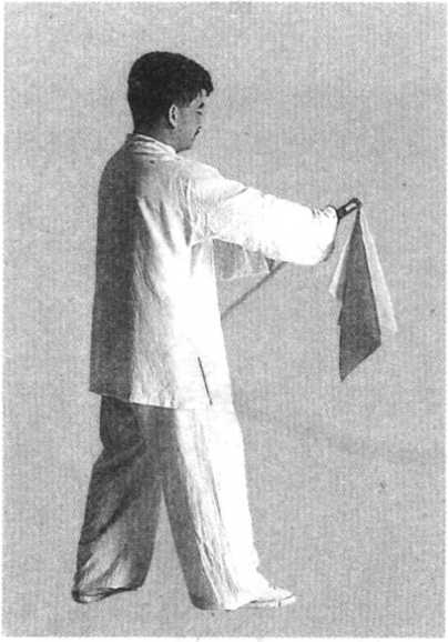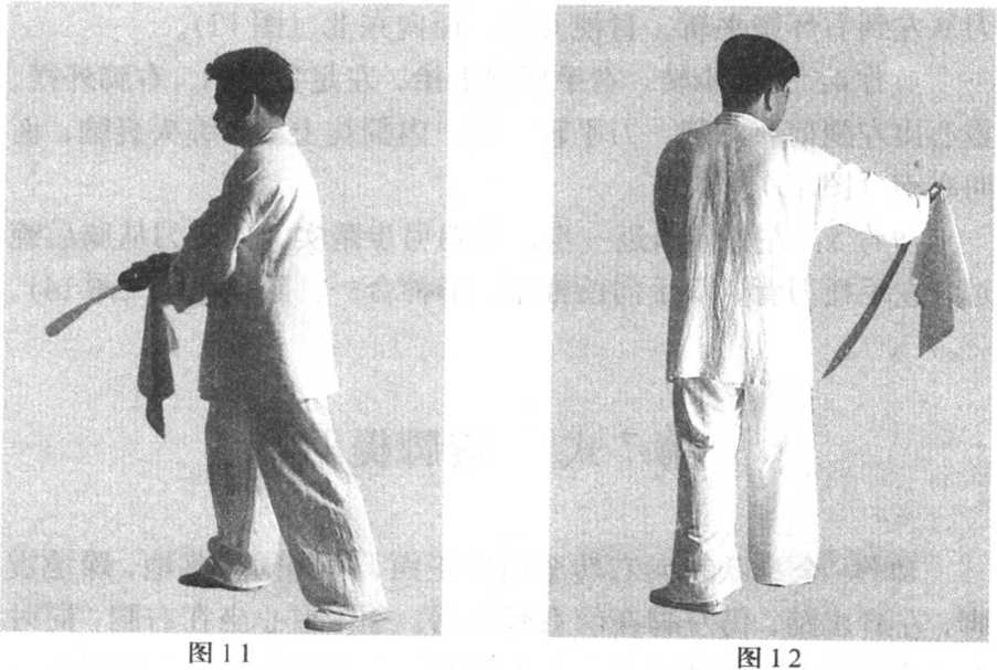 刀从左到右环绕平斩,目视刀锋,面向东北(图12)。