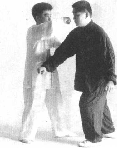 图142 转身蹬脚用法图142 转身蹬脚用法要点:与第43式转身蹬一脚 相同,唯有方向不同。