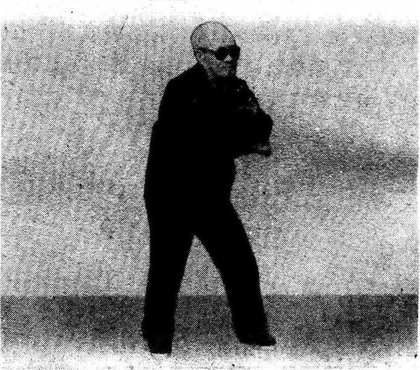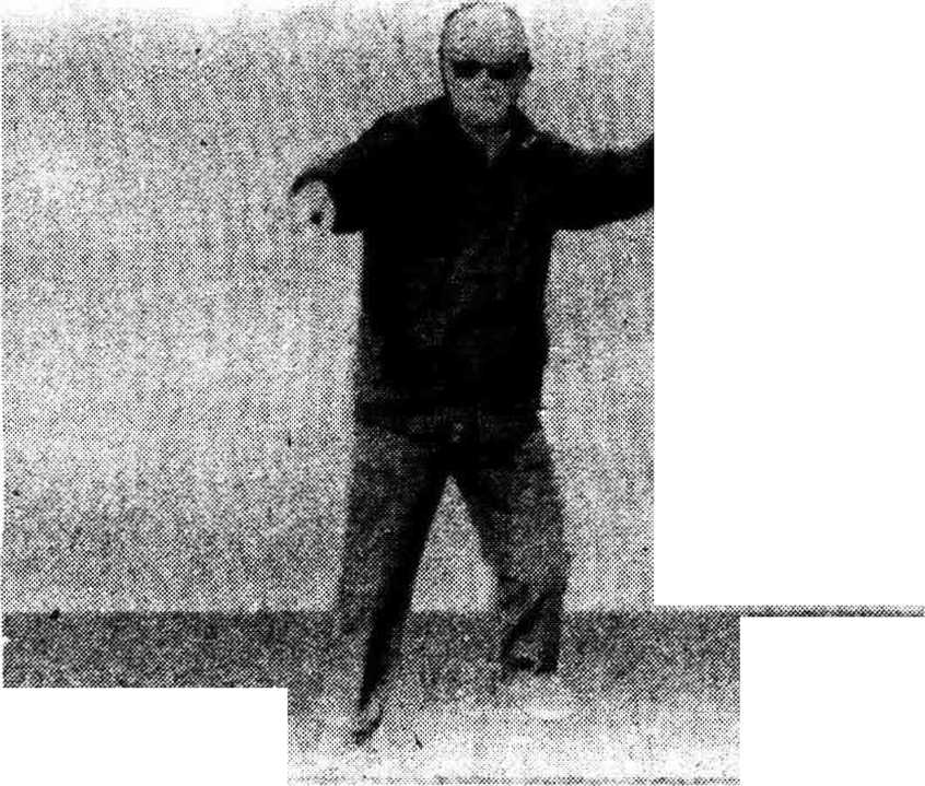 这个式子等于是三个向后退步的“搂膝拗 步”,只是手和脚在动作过程中的配合方法有所不 同,,说明如下: