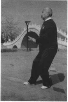 要领:两手向下按时,身 体精神上领,两手向上前合时 身体要向下松沉,尾闾前送, 命门后撑,这即是有上即有 下,有前即有后,这也是武式 拳太极的重要之势,要细心体 会方有所得。