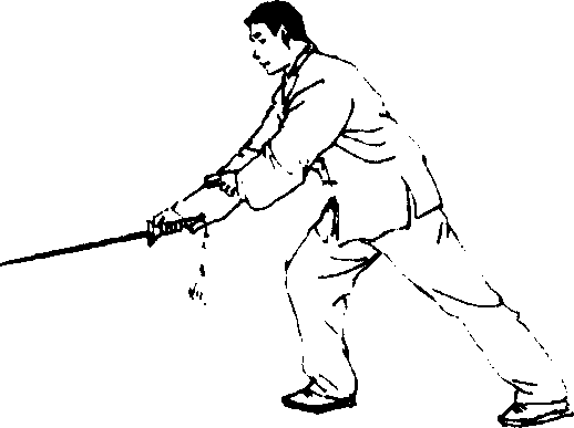 4. 立步直刺:步不动,双手再向前伸扎刺。(图461)