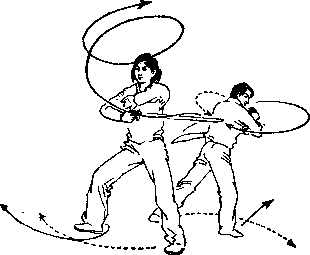 掌同时向上、向左、向下、向右回绕一圈仍附于右肩前