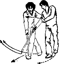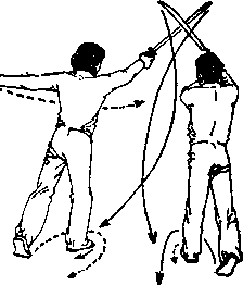虹左臂伸直左掌向左后摆略低于肩目视剑(图-