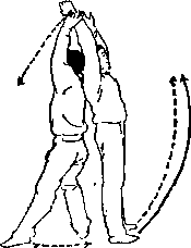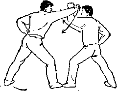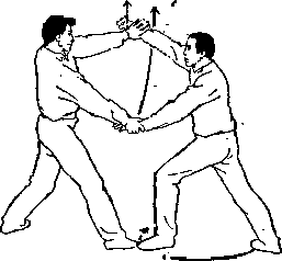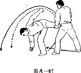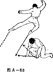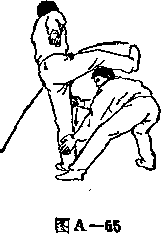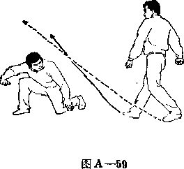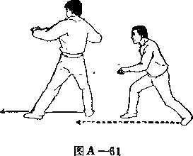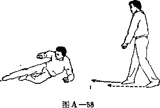 甲两手松开乙左 腿;右脚向前上步;目 视乙(图A—58>。
