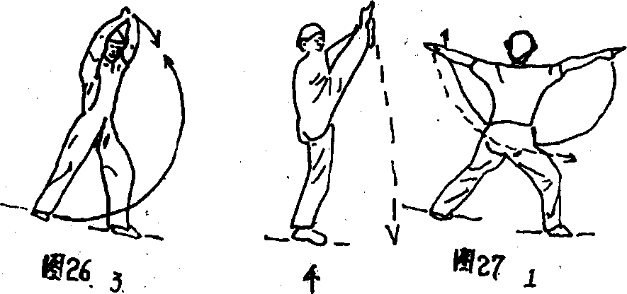 斜下举;目视左掌。(图26①)’
