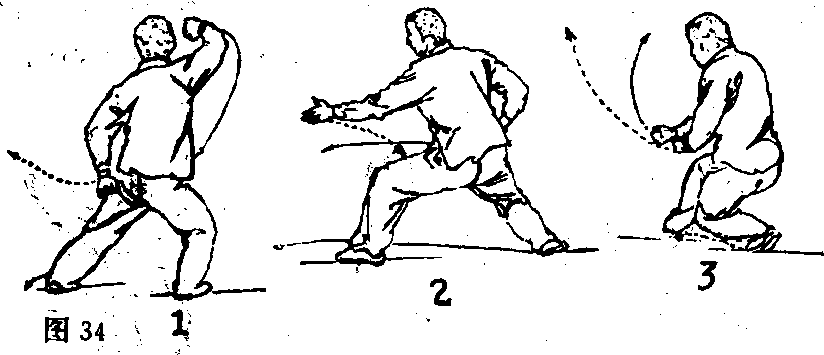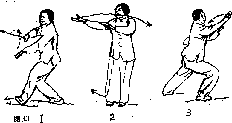 左举iT「石时内侧,两掌斜相对用视石掌(图33③)。