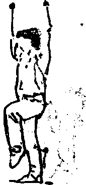 (2) 左腿抬起,向右前下方横踩,两爪腰左侧,目视左Wo (图