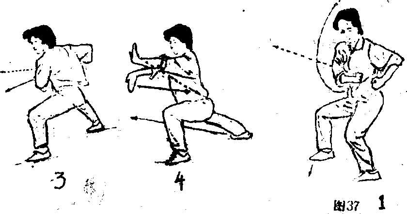 图 37 2 图 38 1 . 2图 37 2 图 38 1 . 2,38:左顿裆步右抛拳