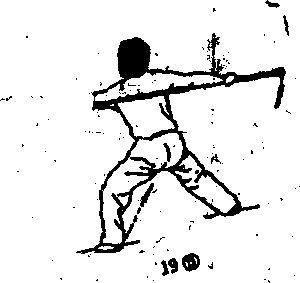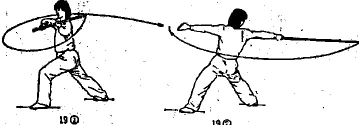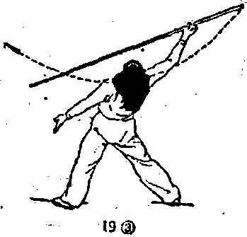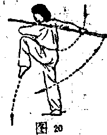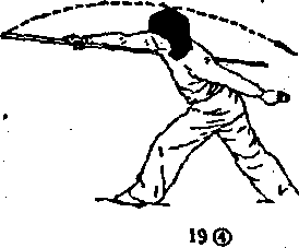 .3)上体后仰,,右手持棍在胸部上方平扫,目视上方.(图19