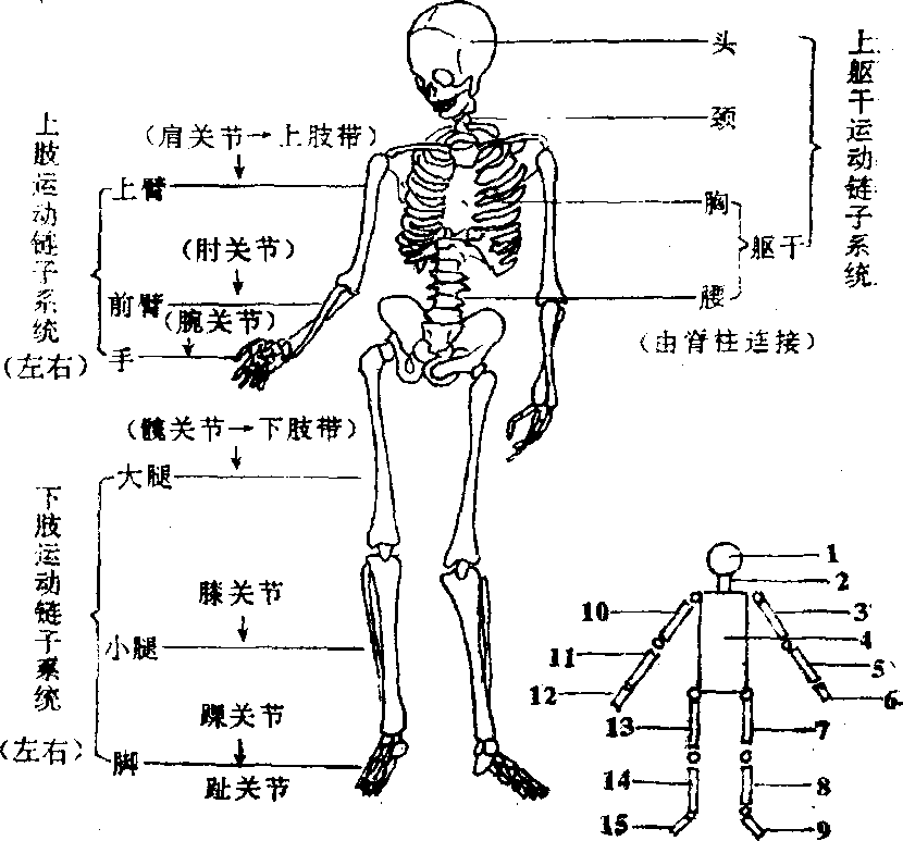 图8—16人体的主要环节与运动惟系统 第一、主躯于运动链子系统
