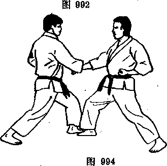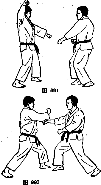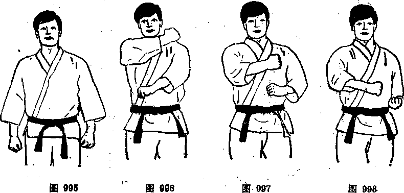 图987-990中的顺式前臂向下防守在实战中并不常用。但是由于它具有锻寐身体的价 也所以应多加练习。