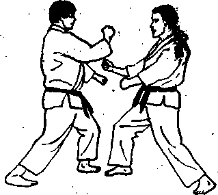 菌臂向下防守的运用:逆式前臂向下防守用于格挡冲拳。在动作完成中,显然格挡和 站立式是一个整体的运动,它是针对对手的进攻而做出的一种反应性运动,要结合上步动 作,保持与对手的适当距离(见图991 一994)。被截击的拳头会被迫向下而远离攻击目标。