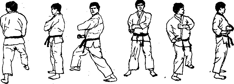 如31841—18^6:目视前方,以右脚为轴,左转90°。左脚回收呈开脚式站立,左拳置 于右攀上。