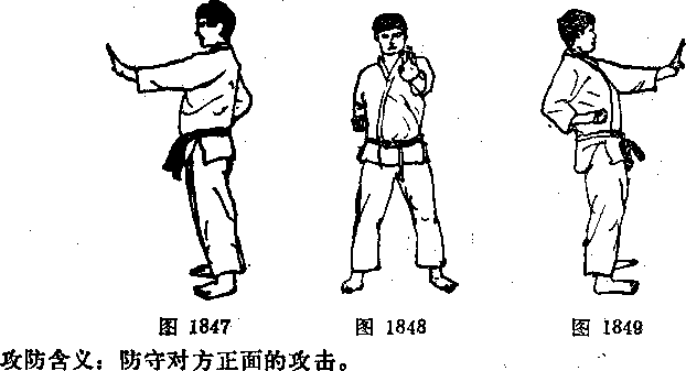 如图1847-1849:变拳为掌,在体菌作侧掌防穹(侧掌舫守