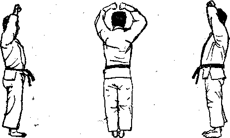 如图1919-1921,左腿不动,右腿收回,同时双拳上举访眷。