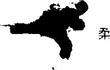 ②左脚支撑身体,右腿向左斜前方举起,右臂由后向左臂前摆动 左 膝弯曲,采用蹲踞侧倒的姿势,向右侧倒(图15-40)