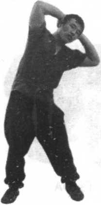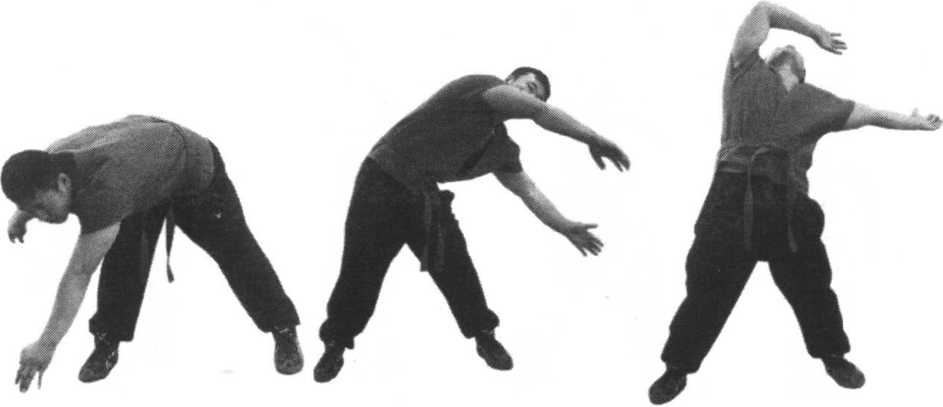 方法:直立,大范围转腰,即从躬身倒转身倒后仰再到躬身。