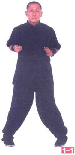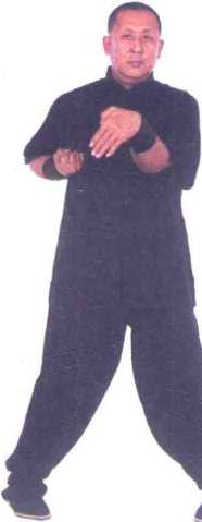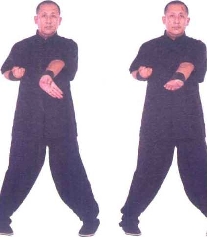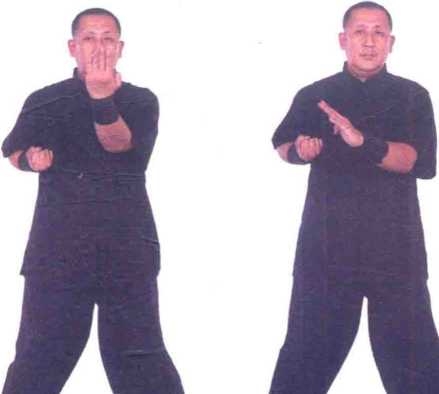1右紧贴胸侧出至胸前中线归肘随即左手小臂走螺旋形向前推出,成摊-(图1、1-21-3)