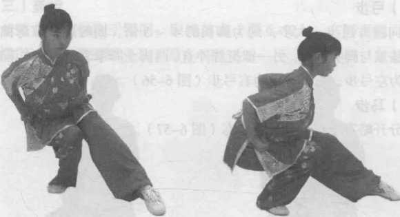 图 6-56图 6-57双脚分开略宽于肩,呈半蹲姿态(图6-57 )。