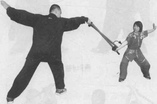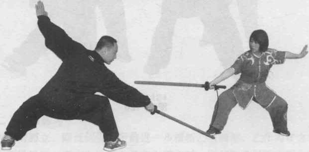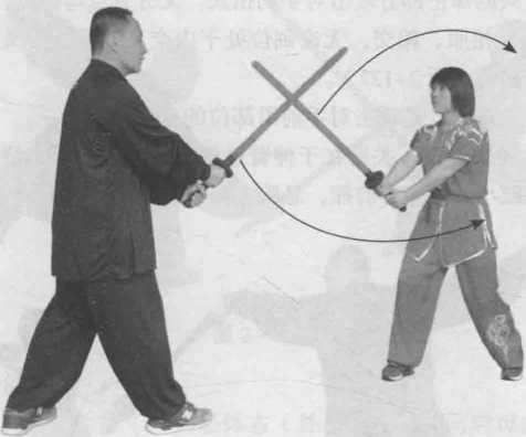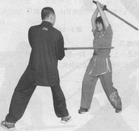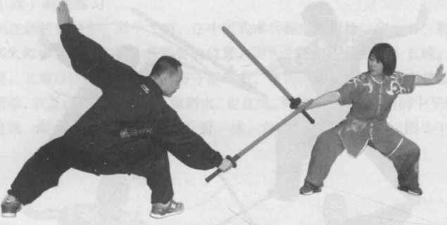 直点:两兵相照、相交,无论剑位处于内交叉或是外交叉部位,直线点 击对方手腕或前臂(图2-127 )。
